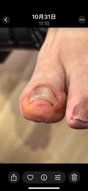 何度か施術をしていますが、また痛みが出る前にとのことで来院されました。巻き爪になられた方は、治ってもまた巻きやすいので、痛くなる前に施術をした方がいいと思います。